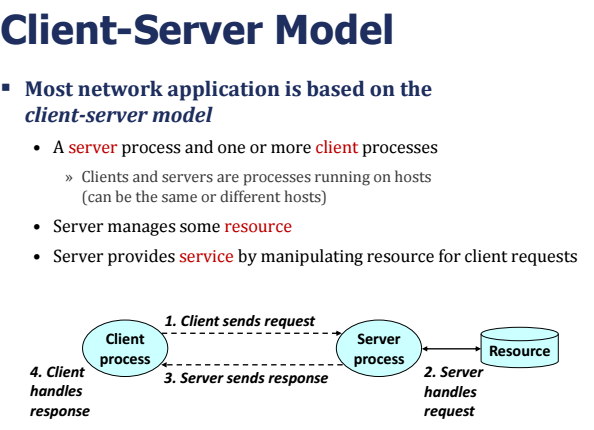 - 하나의 Server process와 하나 이상의 client process들 = Client-Server Model