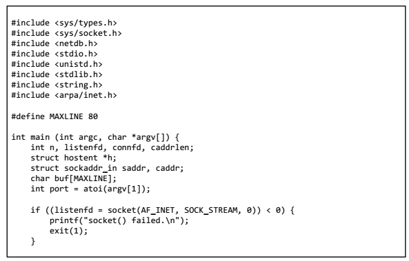 1. socket() 함수를 통해 Server의 socket을 생성 후 listenfd에 socket descriptor를 받는다