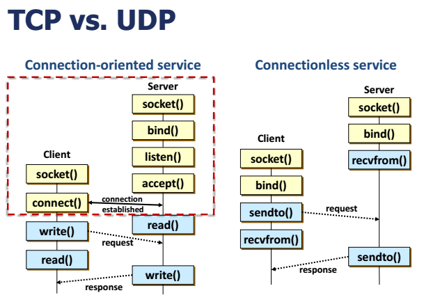- 전송 서비스에서는 UDP와 TCP 두 종류가 있다