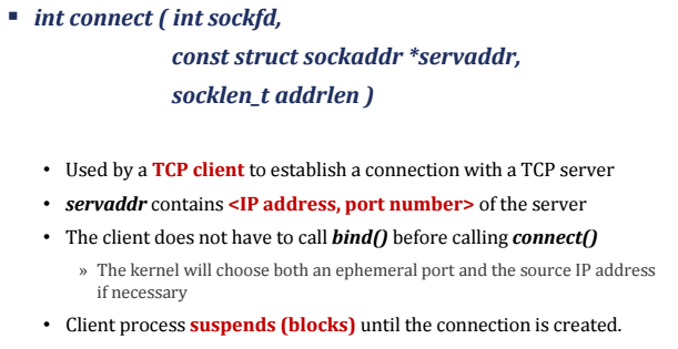 - 일반적으로 TCP client는 kernel이 ephemeral port와 client IP 주소를 고르도록 한다
