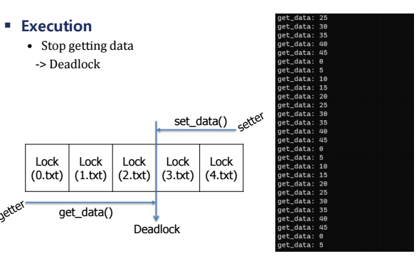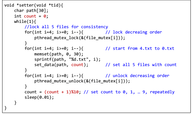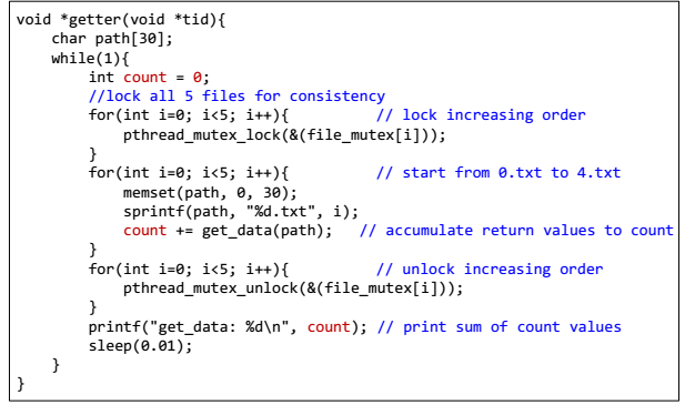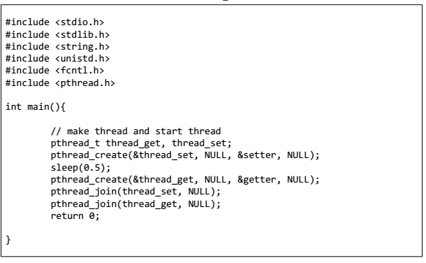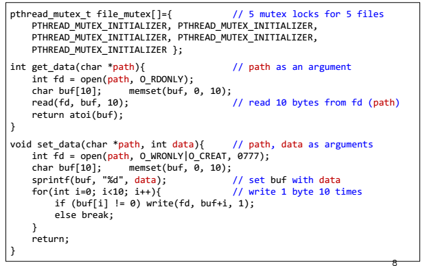 - 각각 critical section을 pthread_mutex_lock을 통해 보호