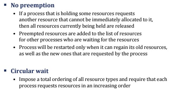 : 다른 프로세스에 이미 할당된 자원을 강제로 빼앗을 수 없다 / 선점이 시간 상의 선점이 아니라 우선권을 우선한다는 의미의 선점이다!