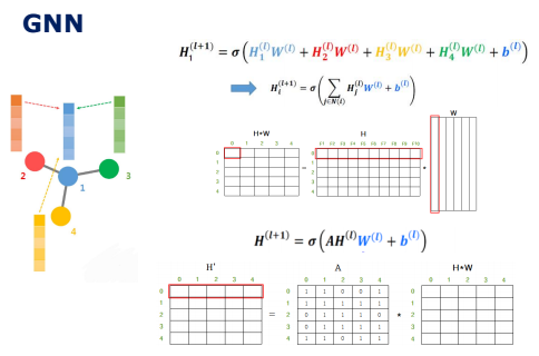 또한 인접행렬을 곱함으로써 각각의 H state는 자신과 연결된 state에 의해서만 영향을 받는다는 것을 보아, local feature들을 학습한다는 특징을 알 수 있습니다.