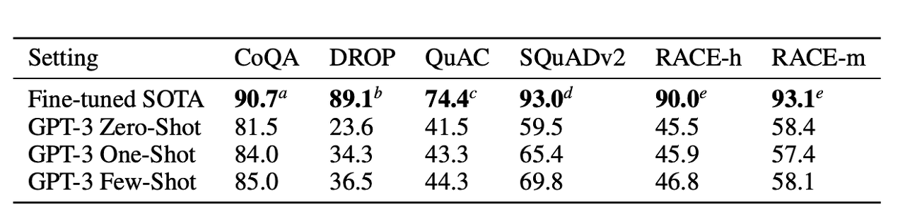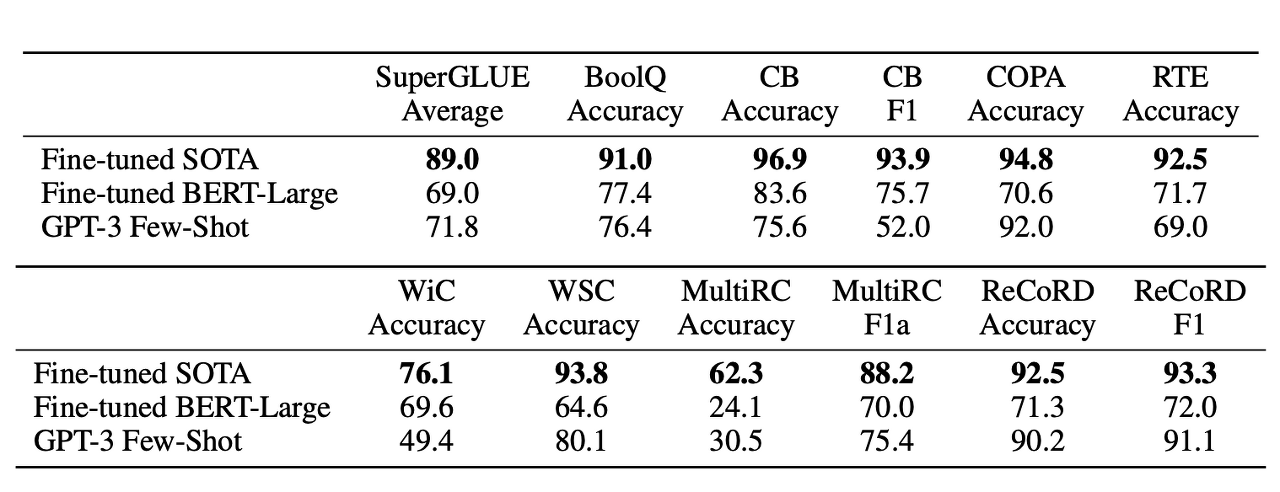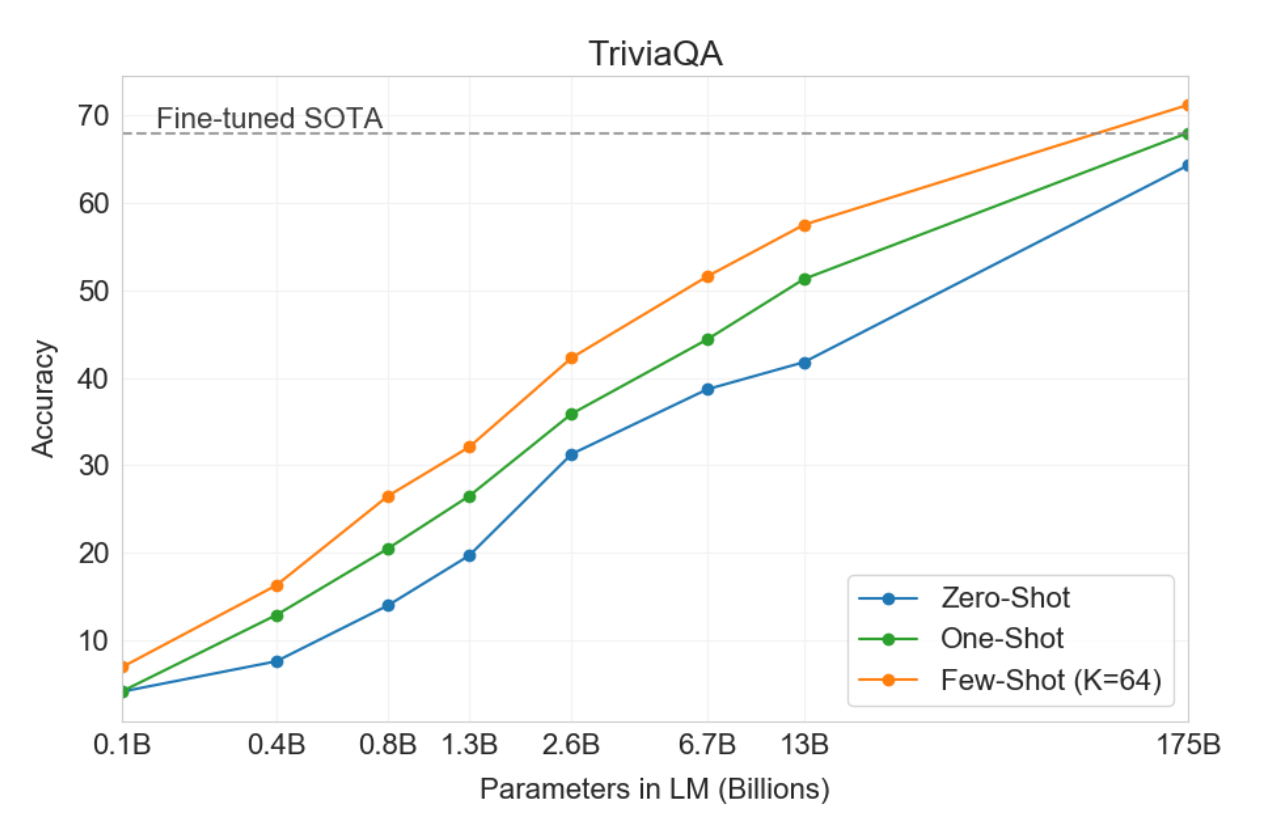 GPT-3는 기존의 Fine-tuning기반 SOTA모델의 성능을 Zero-shot 환경에서도 능가했다,