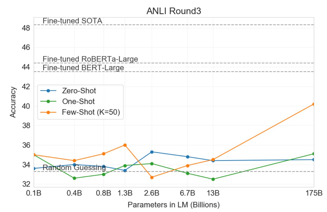 아쉽게도 가장 큰 모델의 Few-shot setting을 제외하고는 찍기와 같이 형편없는 결과를....