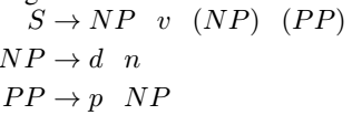 - 입력 이벤트가 2개의 명사와 전치사가 없는 동사를 포함하는 경우, 출력 문장은 [NP V NP]의 형태를 취하지만, 2개의 명사와 동사와 명사를 가진 경우 [NP V PP]가 되어야 함