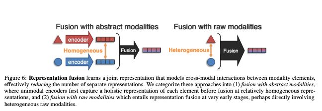 Fusion 내에서도 또 두 갈래로 나눠지는데 1) fusion with abstract modalities , 2) fusion with raw modalities이 바로 그것이다.