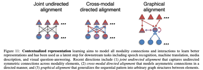 Representation은 각 모달리티 요소 간의 이질성과 상호 연결을 반영하기 위해 멀티모달 데이터를 표현하고 요약하는 방법을 연구한다.