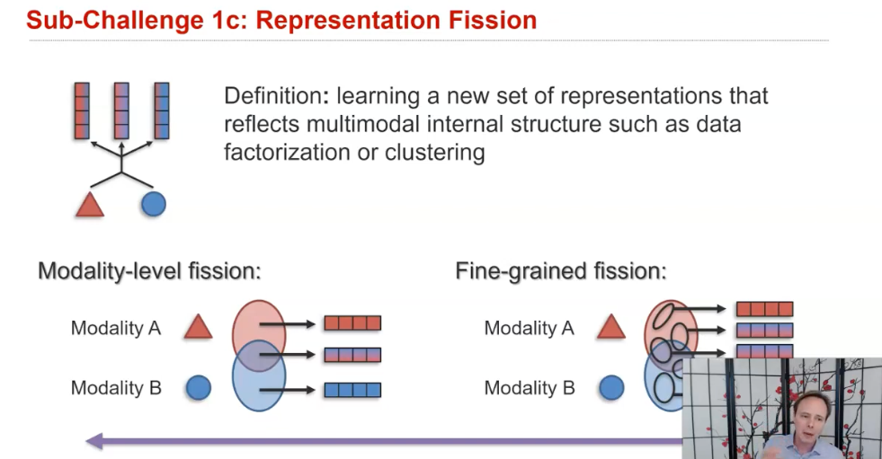 Fission은 input으로 들어온 N개의 모달리티 정보를 잘 결합하는 것까진 동일하나, 그것을 data clustering 이나 factorization을 통해 내부 구조에 대한 N+M개의 representation을 새롭게 생성해내는 것을 의미한다.
