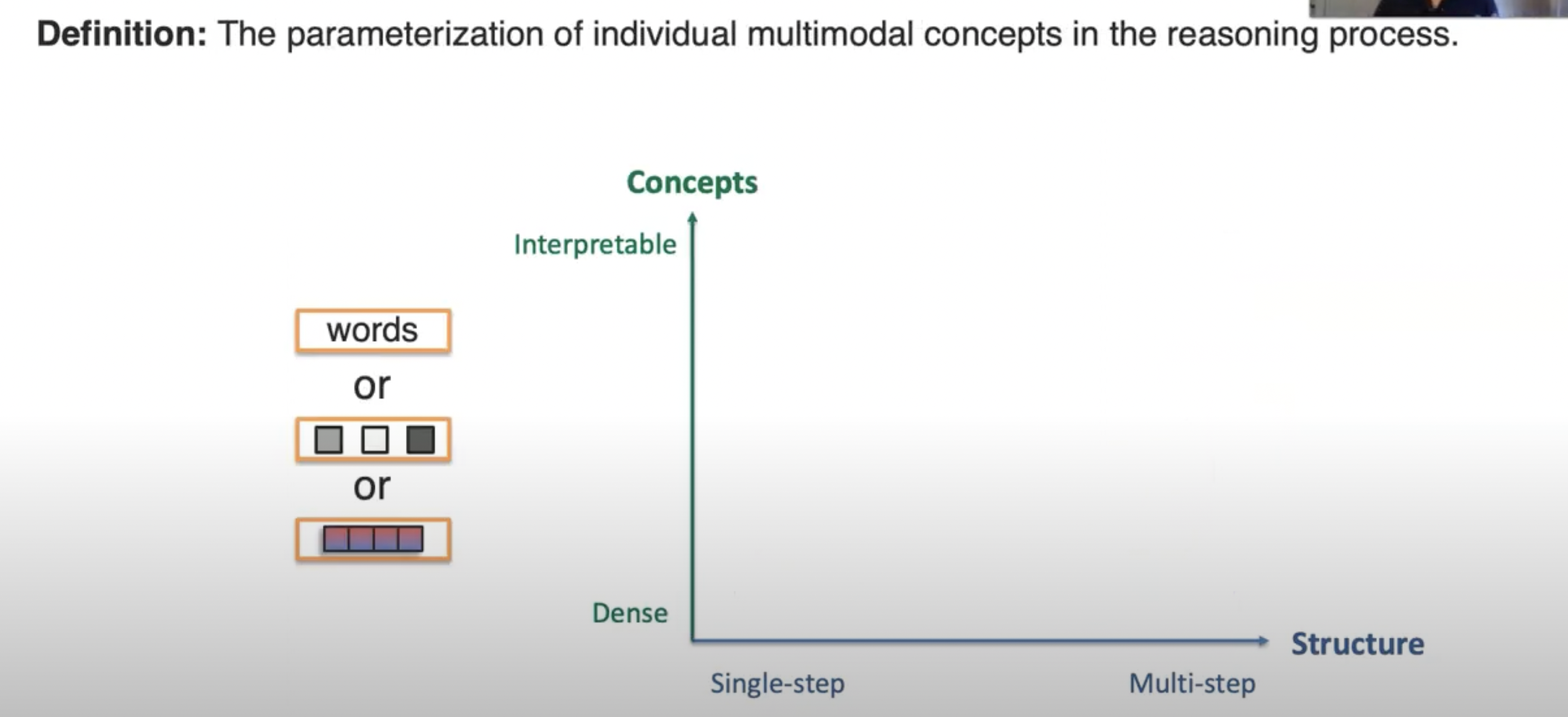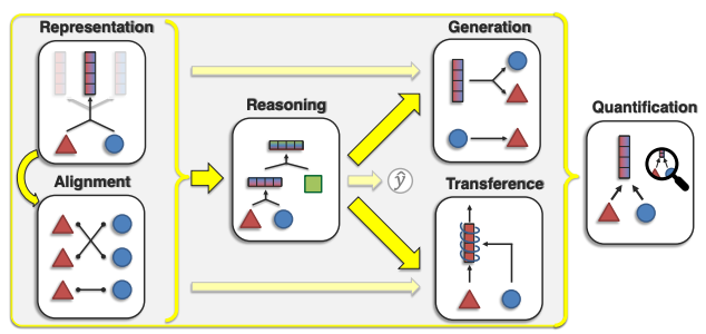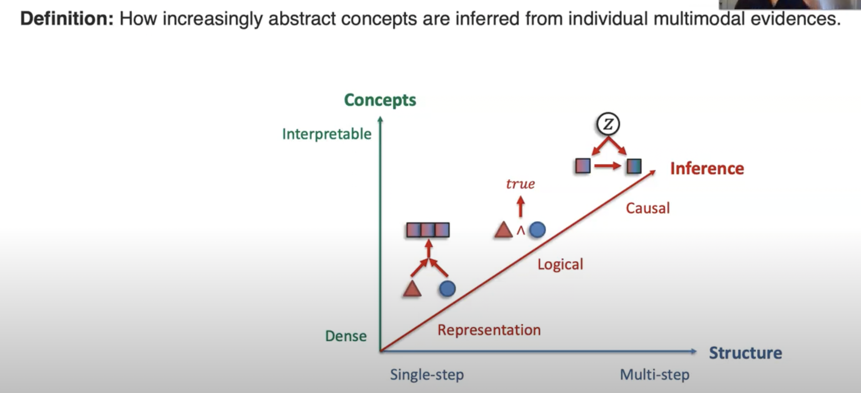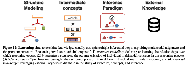 (3) Reasoning aims to compose knowledge from multimodal evidence usually through multiple inferential steps for a task.