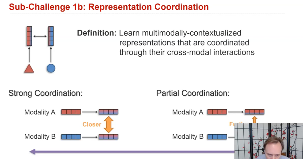 Coordination은 "동일한 수의 representation을 유지하면서" multimodal contextualization를 개선하는 목표로 cross-modal information를 교환하는 것을 의미한다. 즉, 두 개의 모달리티 정보가 들어오면 두 정보를 잘 섞어서 두 개의 representation을 각각 조금씩 "조정"한다.