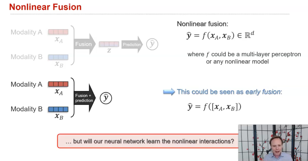 매우 초기 단계에서 fusion을 수행하며, 아마도 heterogeneous한 raw modalities 그 자체를 포함할 수도 있다