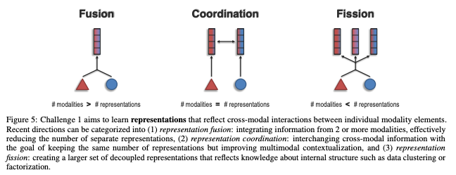 Fusion은 두 개 이상의 모달리티에서 정보를 잘 융합하여 "개별 representation의 수를 효과적으로 줄이는 것"을 의미한다.