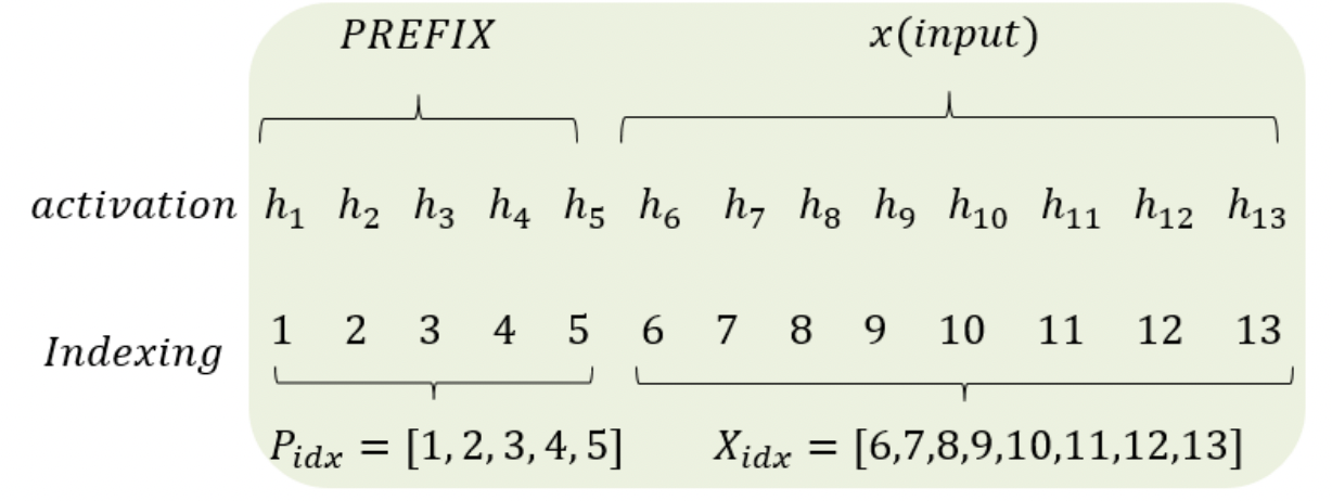 - prefix는 텍스트 프롬프트를 숫자로 변환한 거랑 같은 역할 / prefixes == continuous prompts == task-specific bias term
