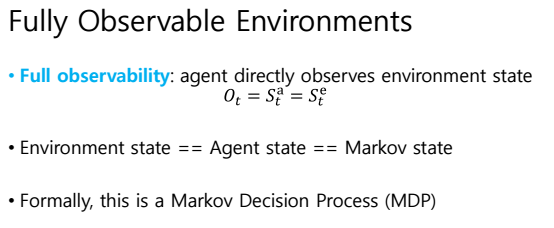 - agent가 Env. State에 대해 직접적으로(directly) 관찰할 수 있을 때
