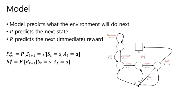 - agent는 그 자체만의 state 표현을 구축해야 함 ⇒ 그게 바로 Model!