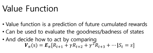 - 갹 State가 얼마나 좋은지 / 각 State & action이 얼마나 좋은지