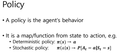 - Deterministic Policy 와 Stochastic Policy 구분!