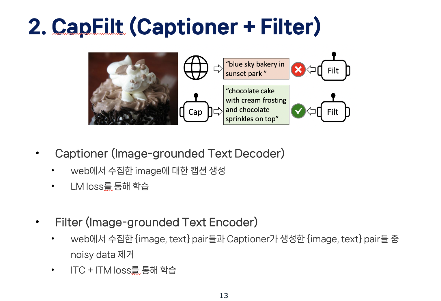 CapFilt는 이름대로 Captioner와 Filter로 이뤄져 있습니다.