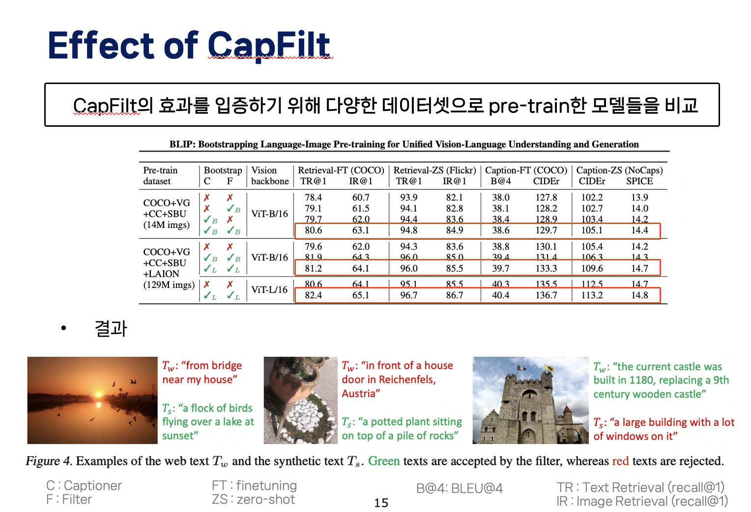 CapFilt를 거친 결과는 figure에서 확인할 수 있습니다.