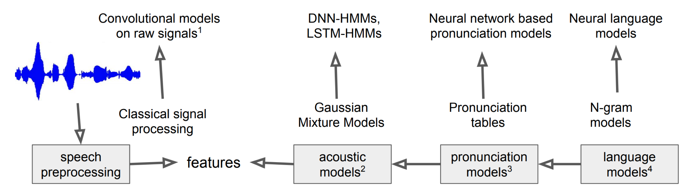 - 기존: 히든 마코프 모델(Hidden Markov Model), 가우시안 믹스처 모델(Gaussian Mixture Model), ...