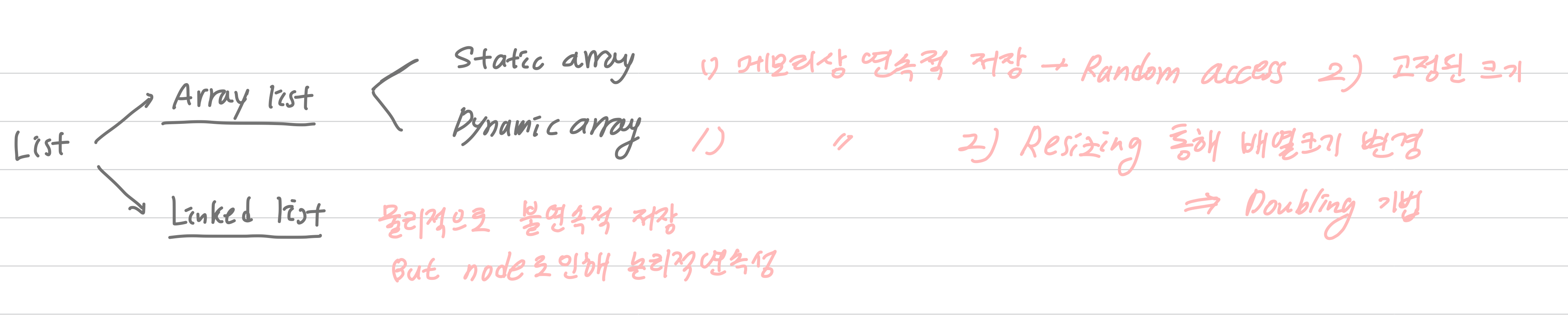 - array list는 다시 1) static array와 2) dynamic list로 나뉘어진다