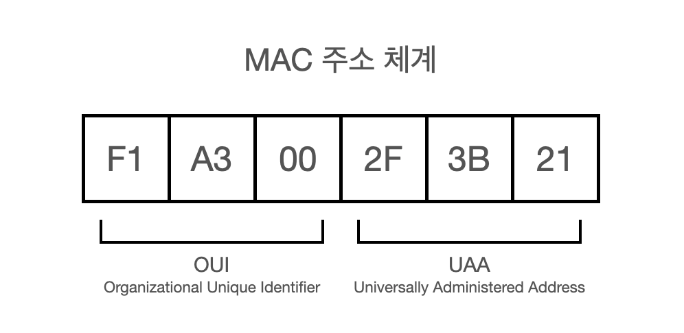 - 6 bytes : 앞 3개는 기업/단체의 고유 번호, 뒤 3개는 기업/단체에서 할당하는 번호다