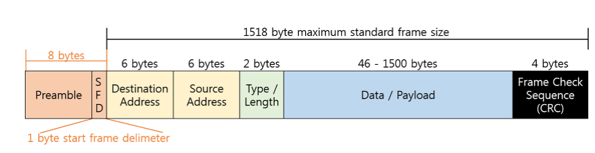 - 이더넷 프로토콜을 사용하고 프레임 단위로 보낸다