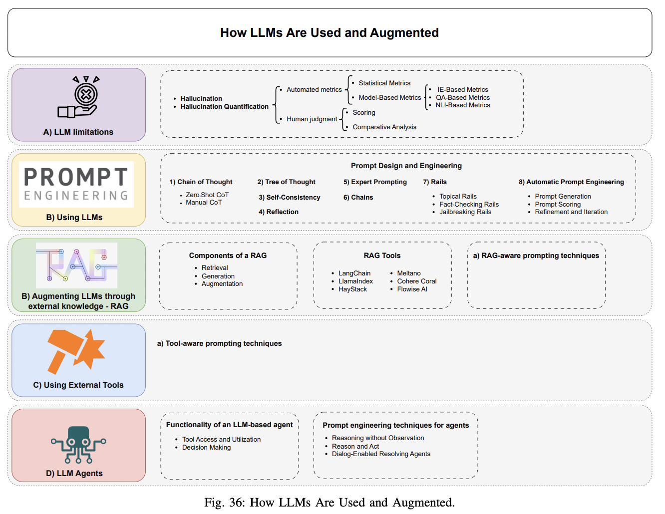 - 검색된 관련 정보는 원래의 프롬프트에 추가되어 LLM에 제공되며, 모델은 이를 바탕으로 최종 응답을 생성합니다. RAG 시스템은 검색, 생성, 보강의 세 가지 중요한 요소로 구성됨