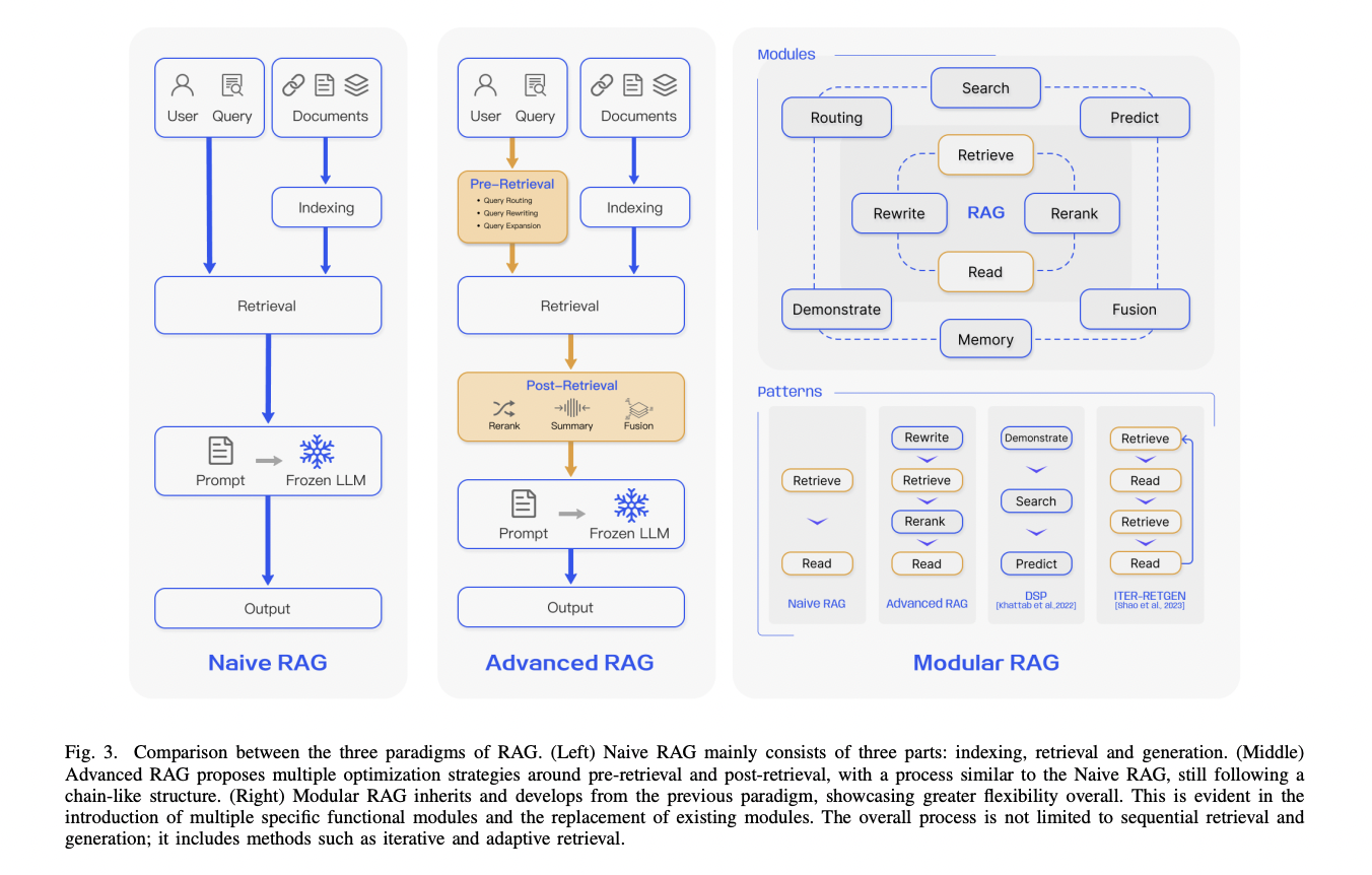 - Retrieval 단계에서의 Naive RAG의 한계를 극복하기 위해 1) Pre-retrieval process과 2) Post-retrieval Process를 가짐