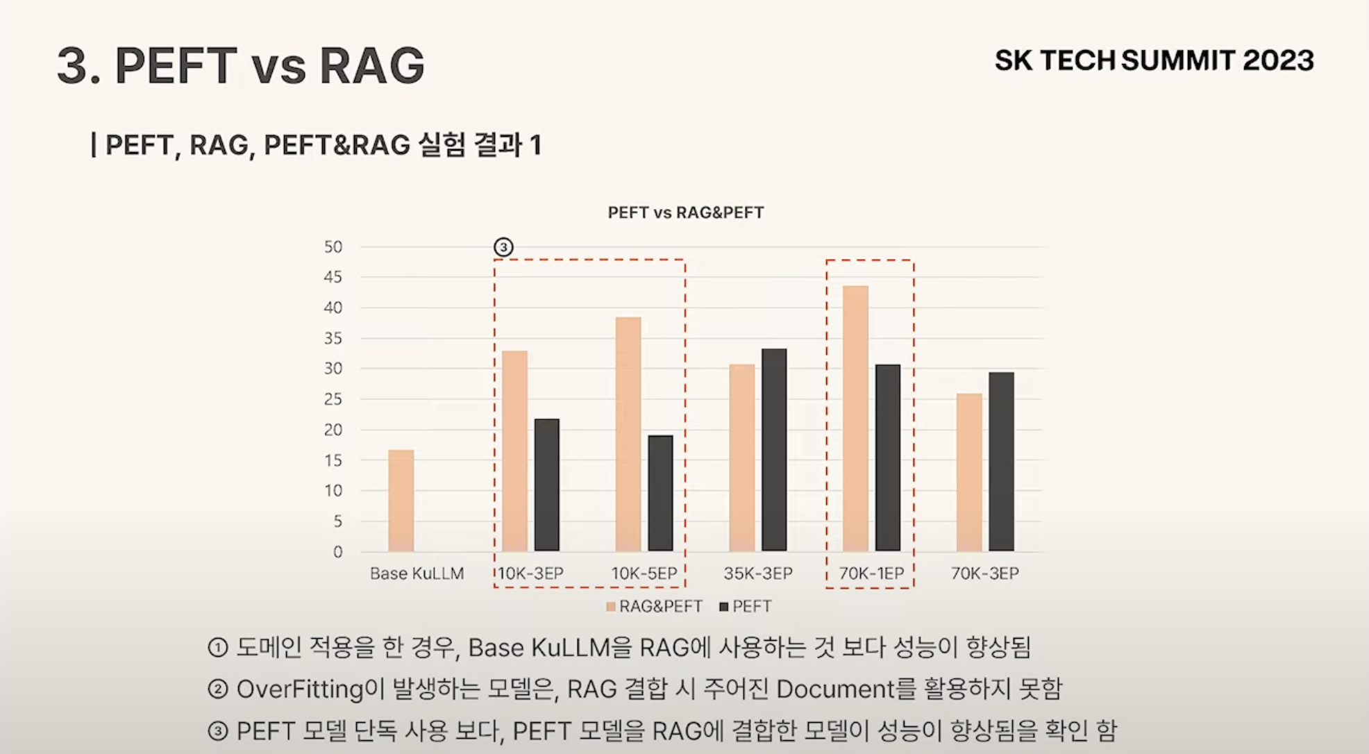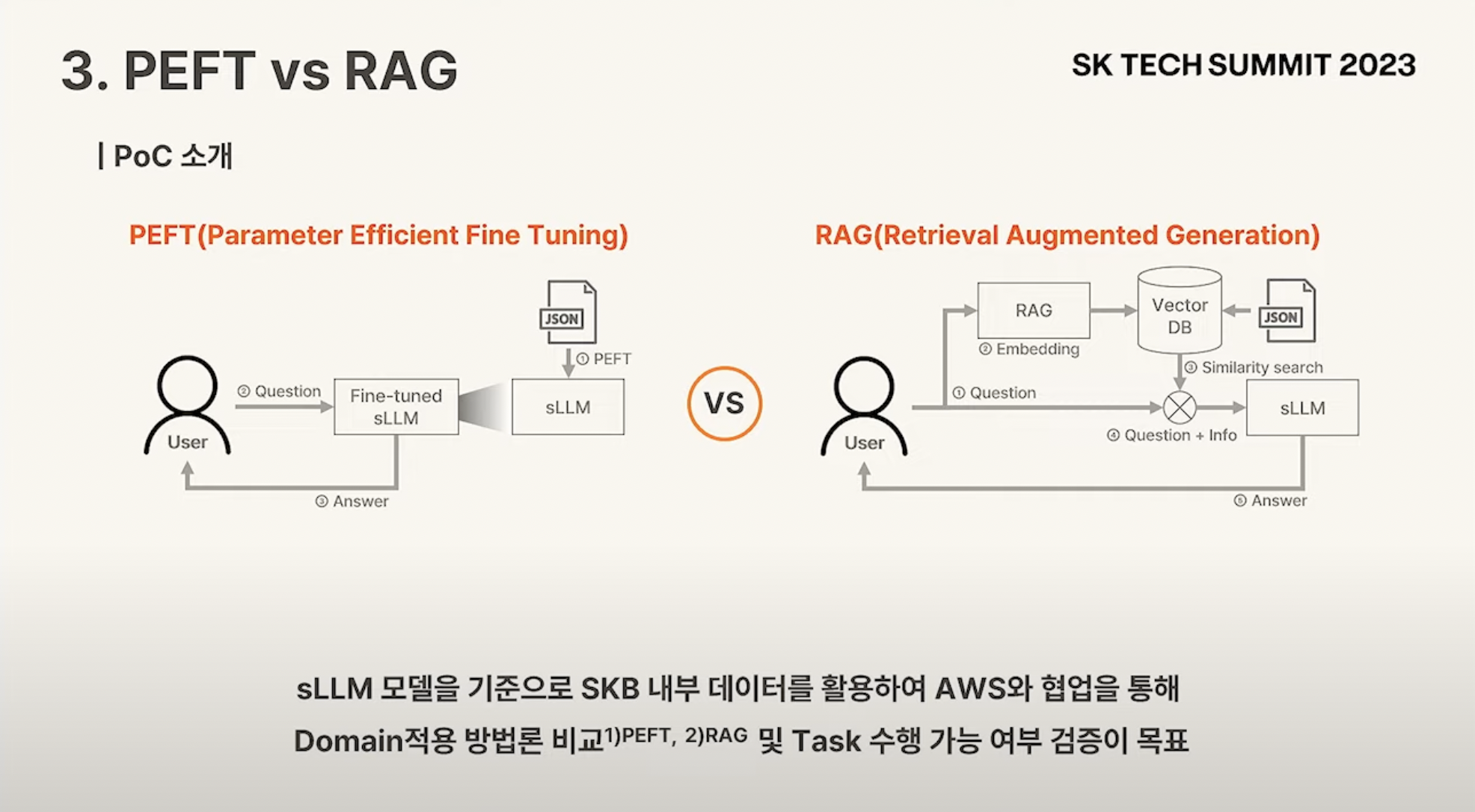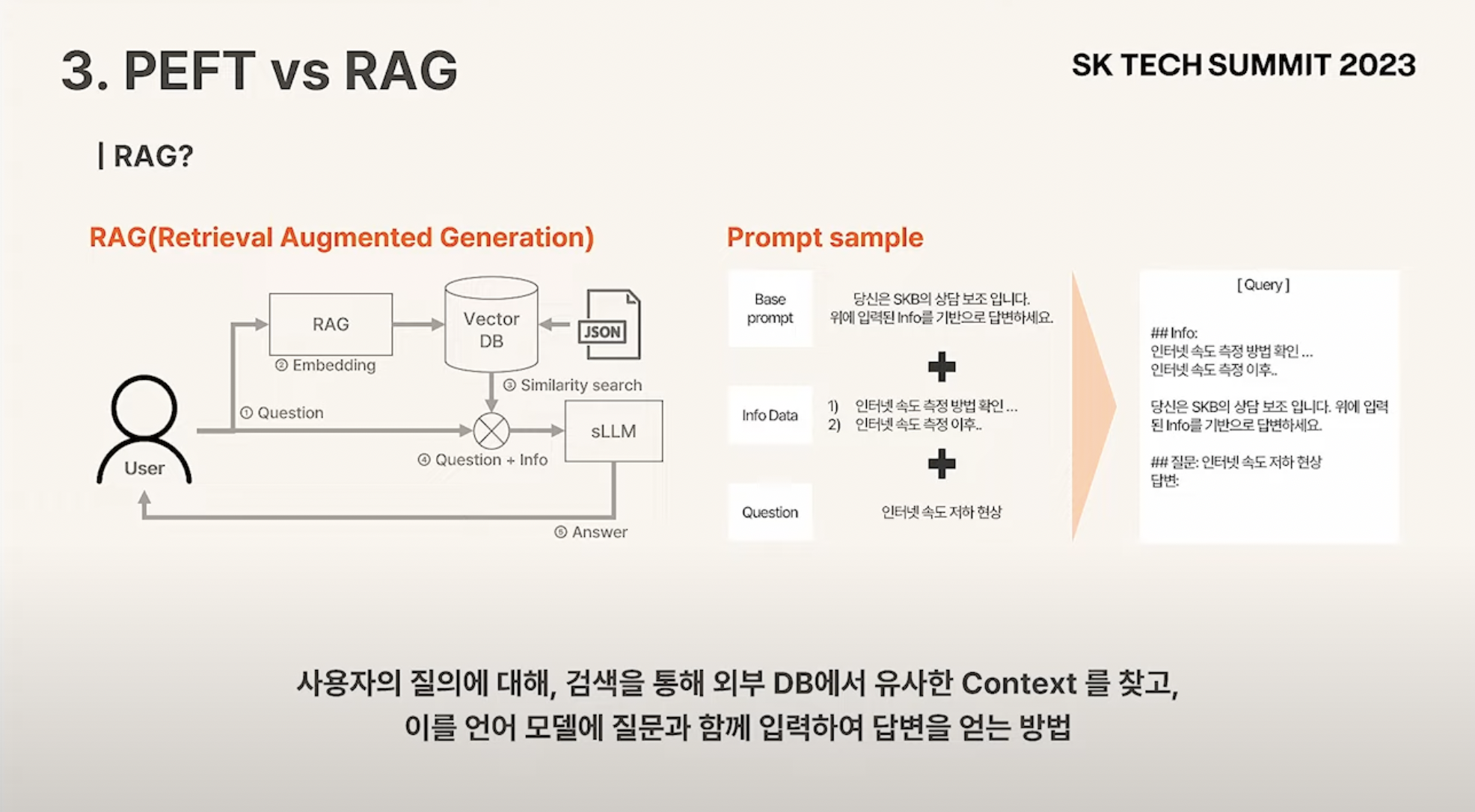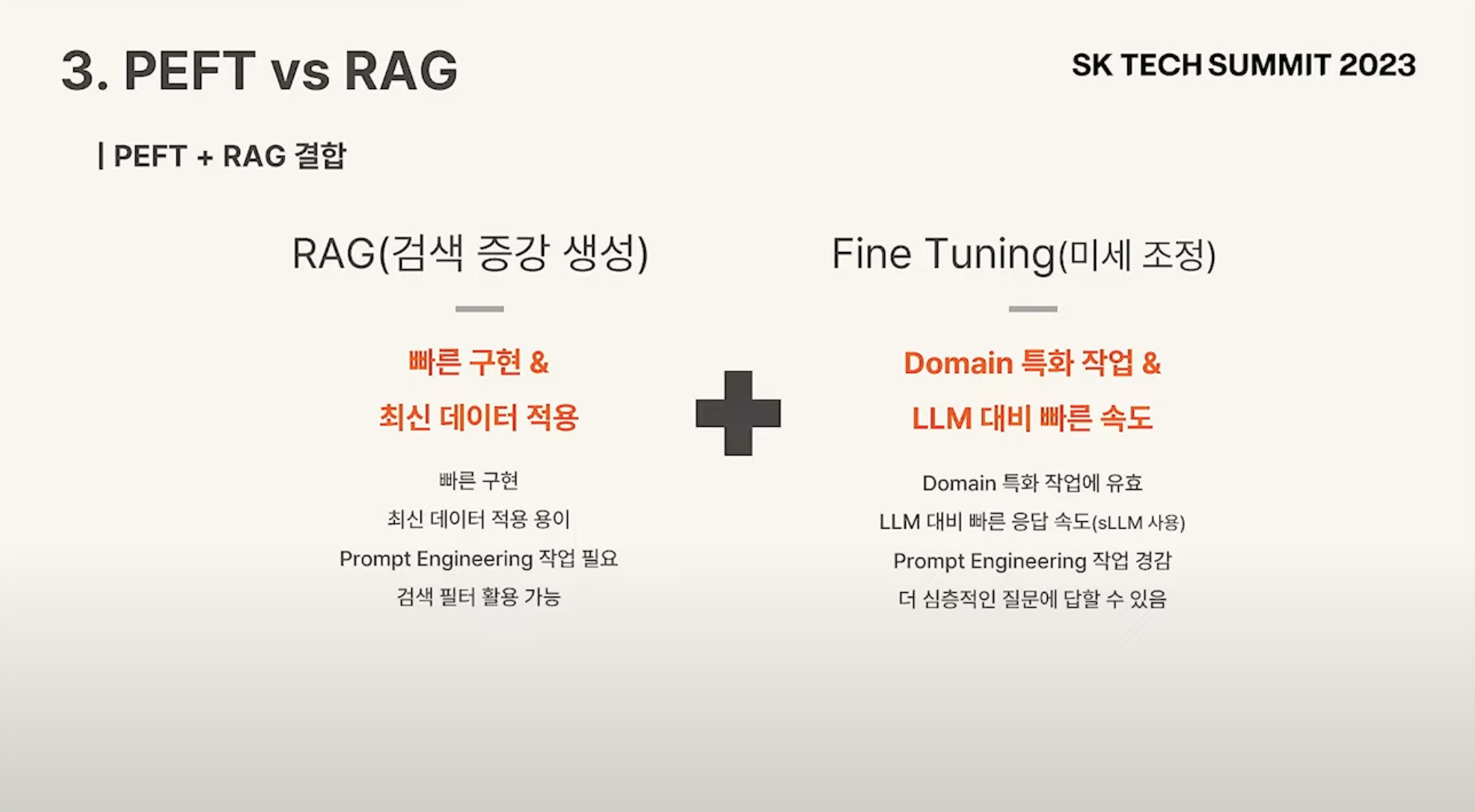"[SK TECH SUMMIT 2023] LLM 적용 방법인 RAG VS PEFT, Domain 적용 승자는?"