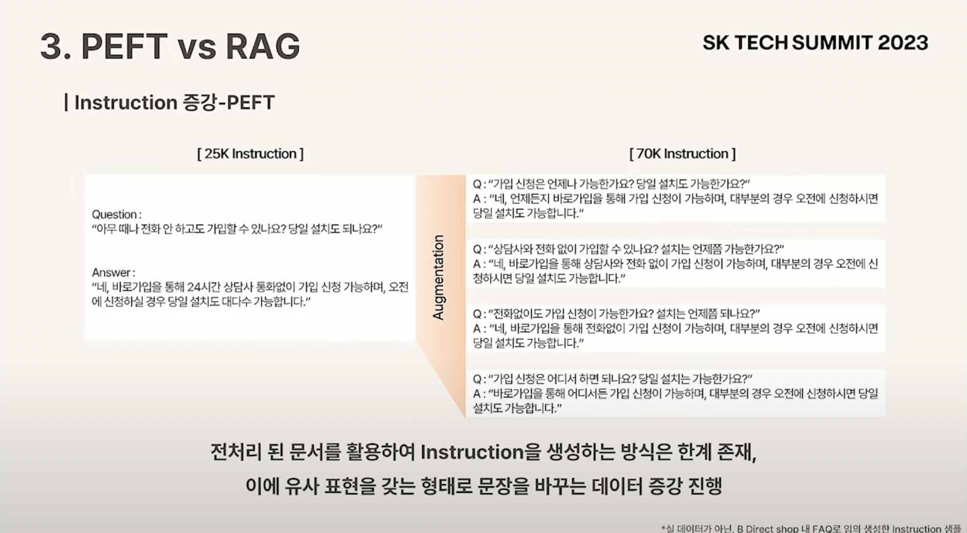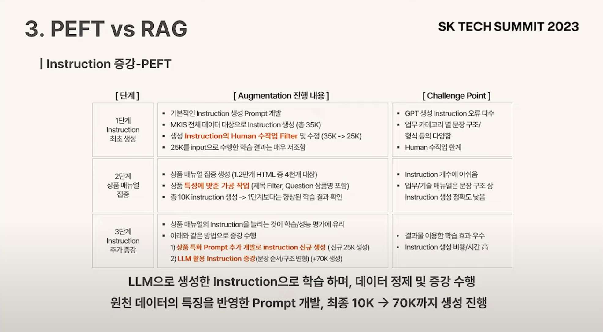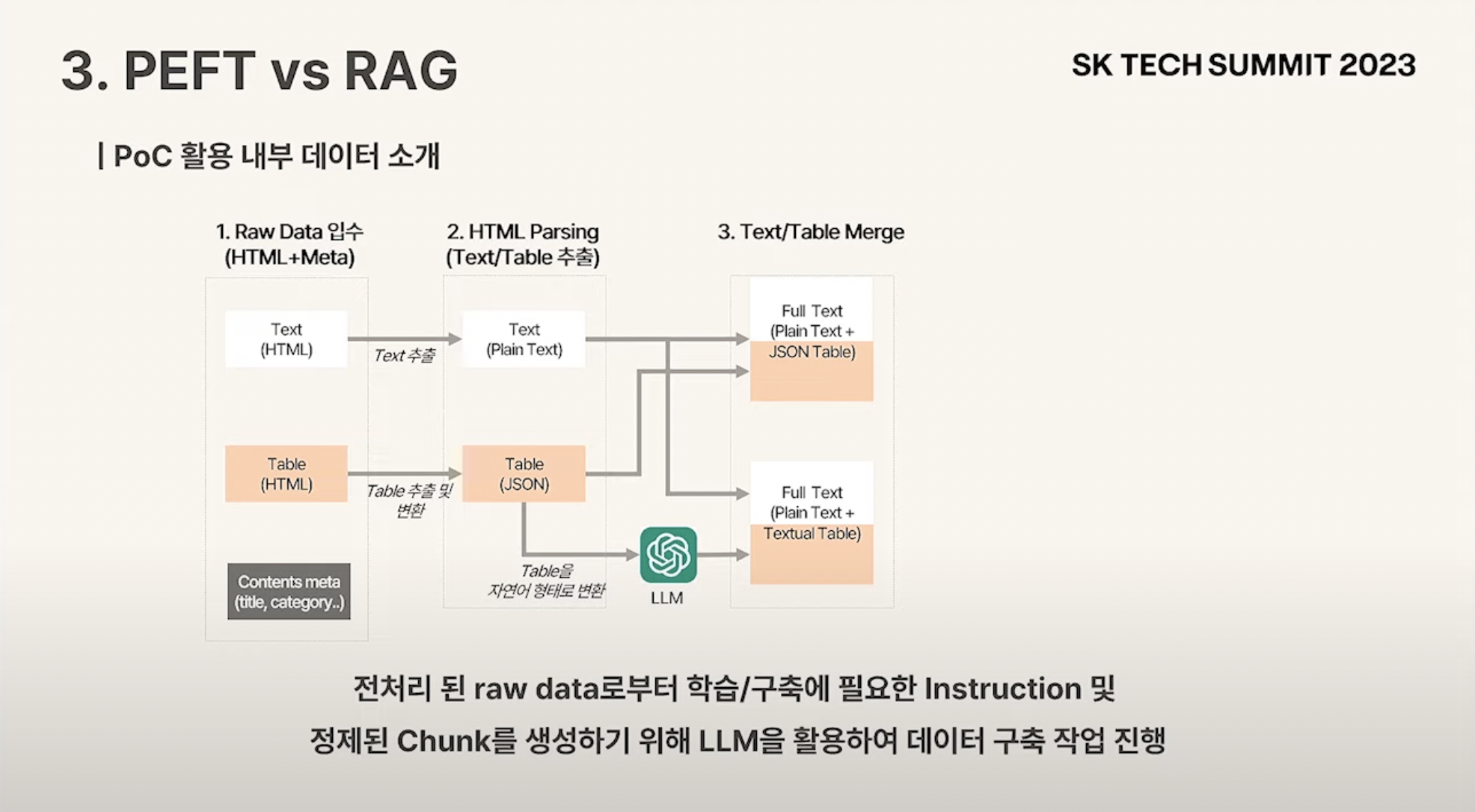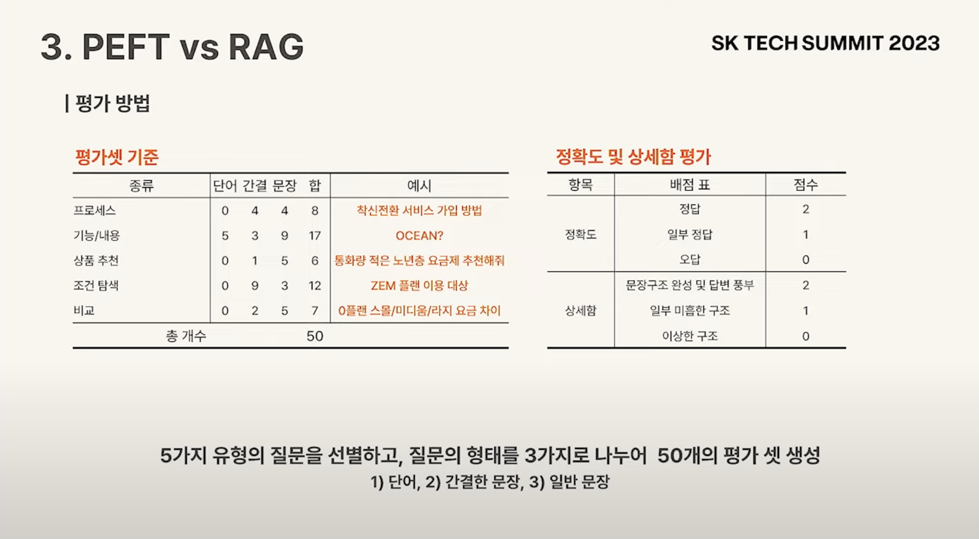 "[SK TECH SUMMIT 2023] LLM 적용 방법인 RAG VS PEFT, Domain 적용 승자는?"