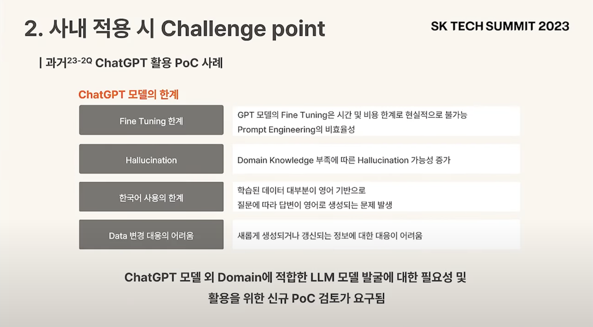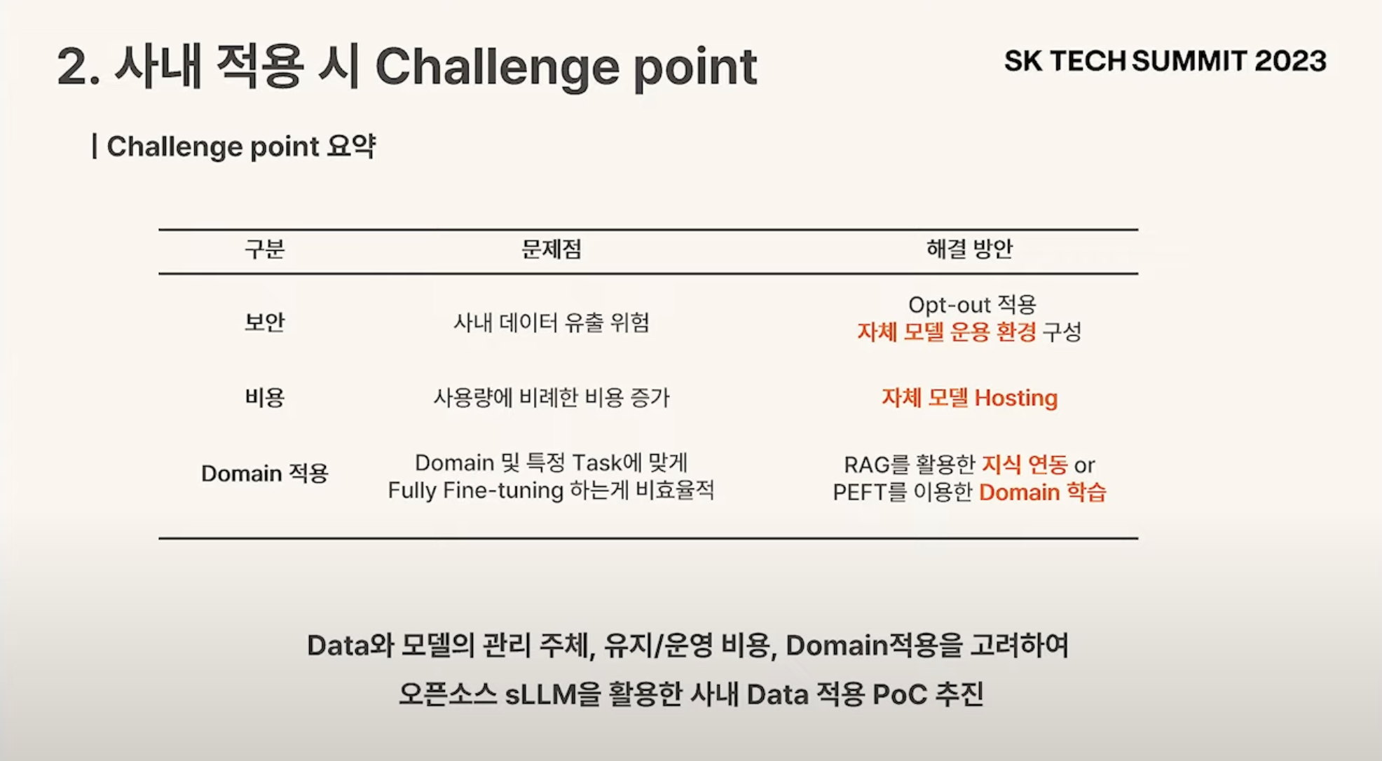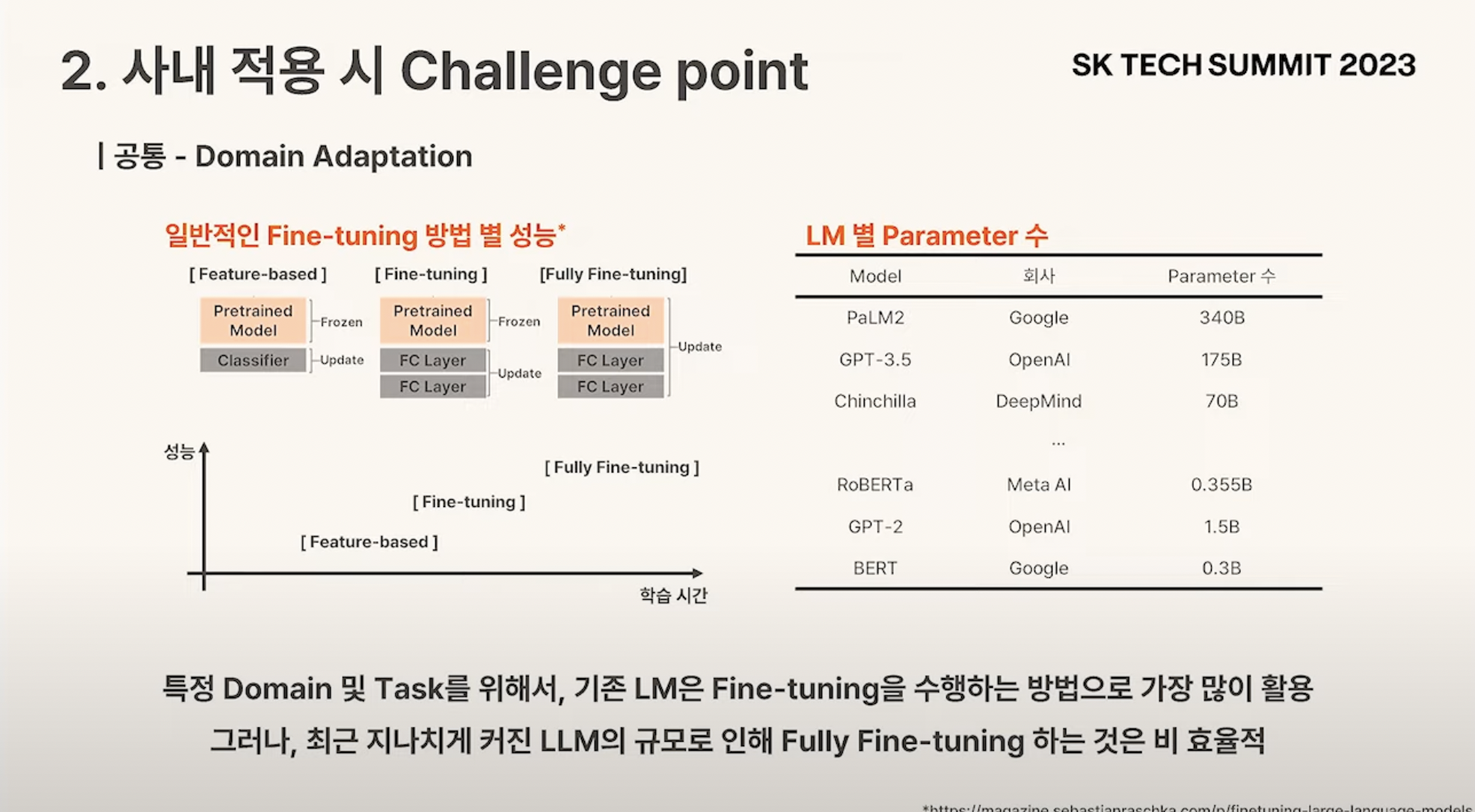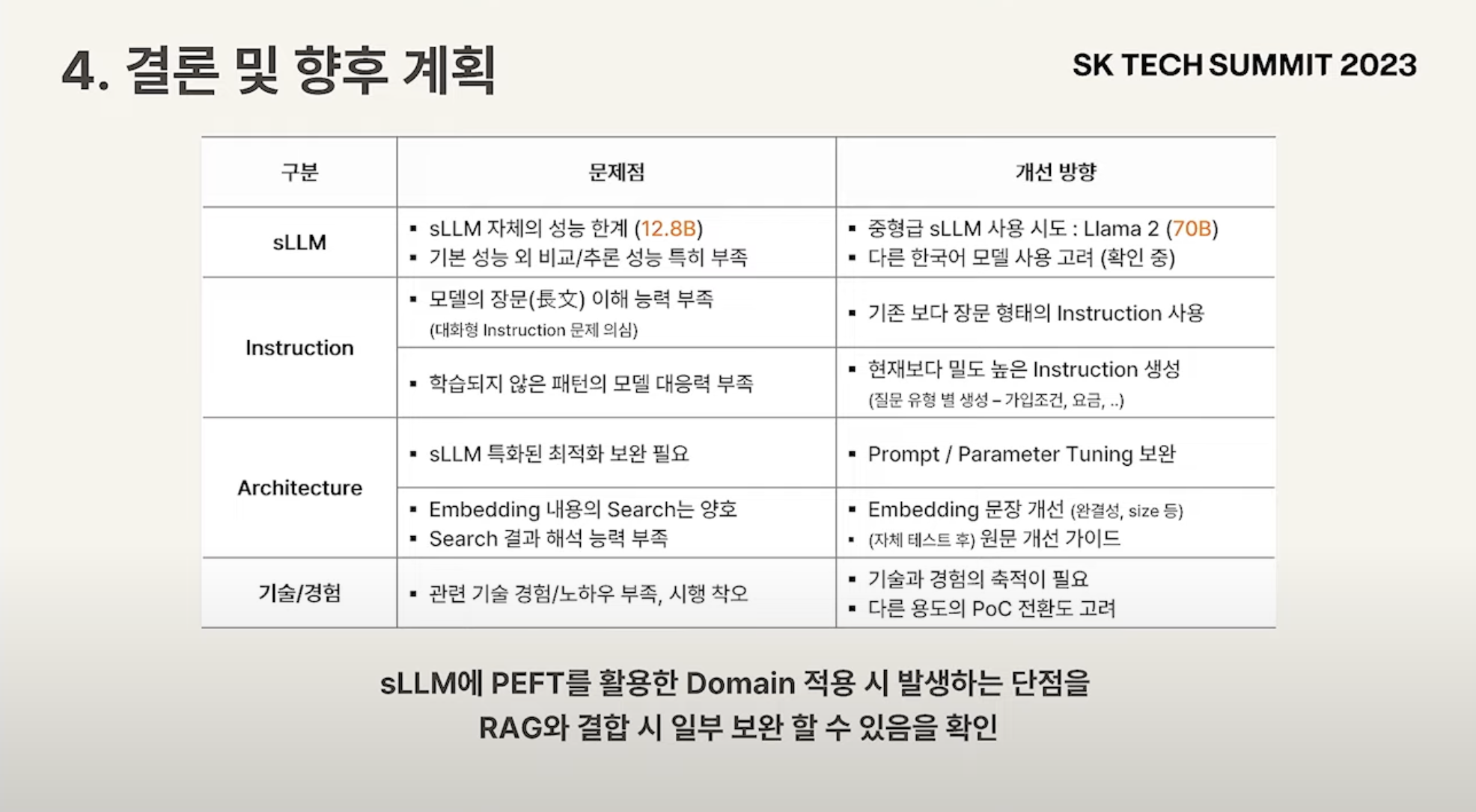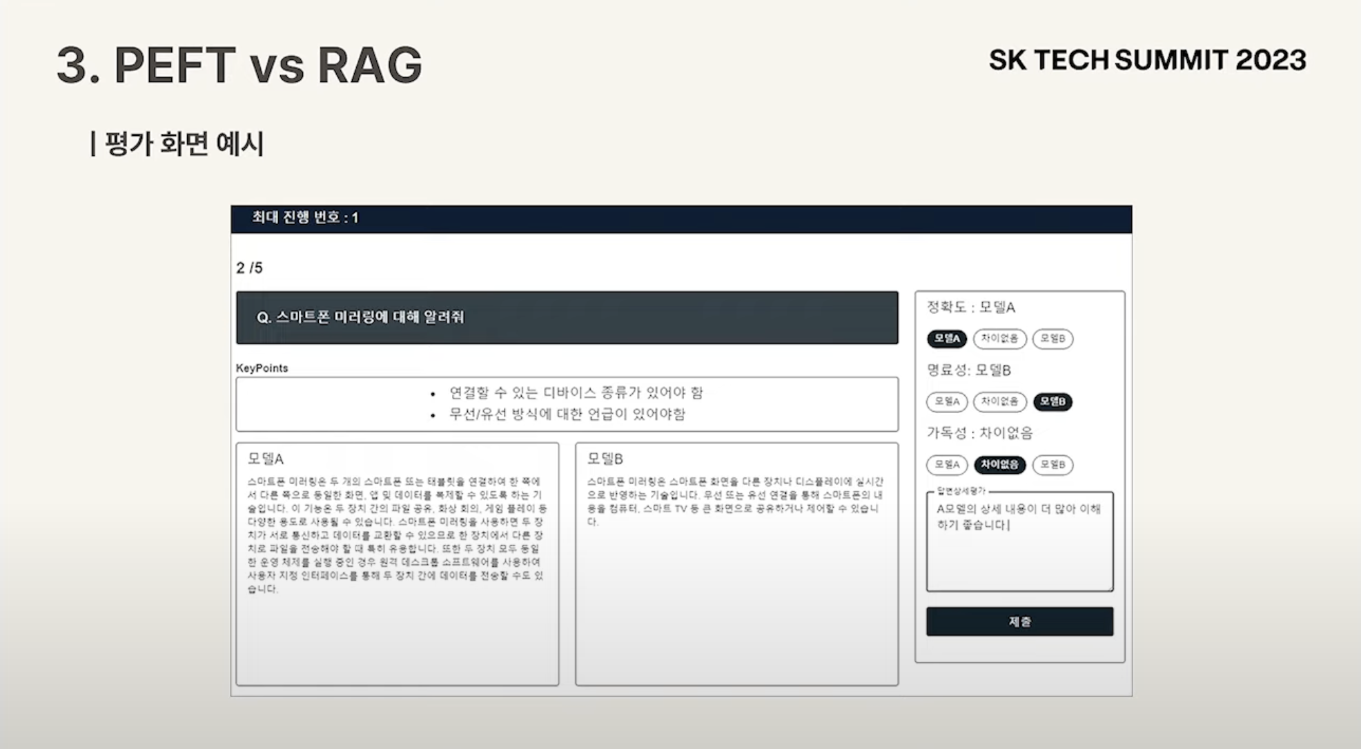 "[SK TECH SUMMIT 2023] LLM 적용 방법인 RAG VS PEFT, Domain 적용 승자는?"