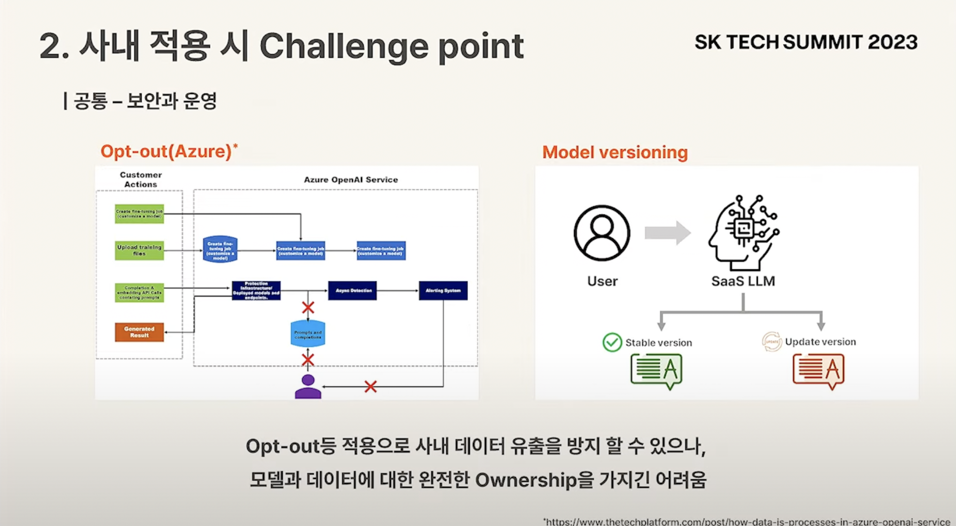 - 1. Opt-out 등으로 보안 지킬 수 있으나, 버전 업데이트 하면서 이전에 답변이 잘 생성되었던 게 이번엔 잘 안 될 수도 있는 문제 발생 가능