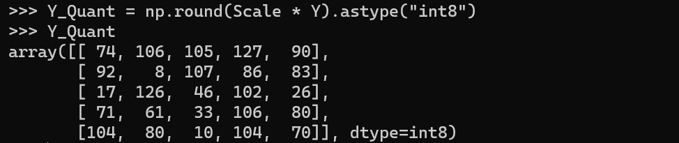 4. 양자화된 값 = (스케일 * 원래 값)을 반올림한 값