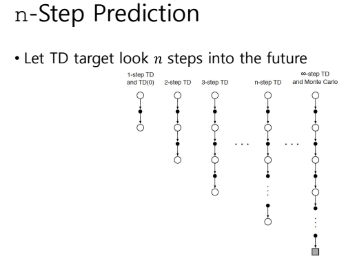 - n이 terminal state까지 가면 Monte Carlos 방식이 된다