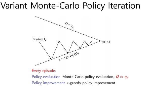 ( ↔ Monte Carlos Control은 Monte Carlos Policy Evaluation + Greedy Policy Evaluation)