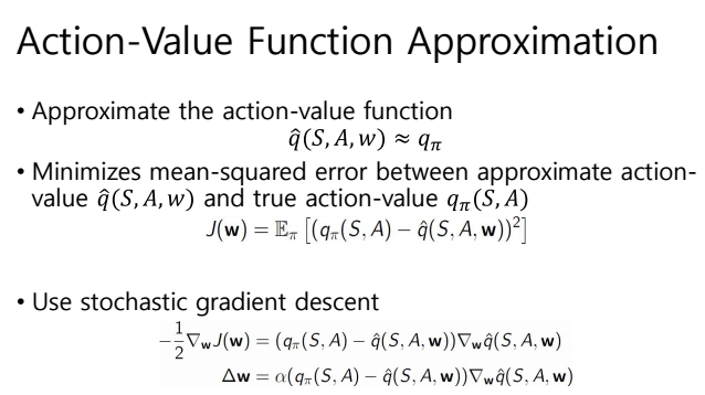 ⇒ 어떤 오차를 줄일 것이냐 : true action value function 값 q(s) (==supervisor) 와 approximate q_hat(s)