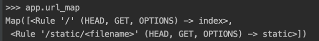 - 플라스크는 이 맵을 app.route데코레이터나 데코레이터를 사용하지 않은 버전인 app.add_url_rule()를 사용하여 빌드한다.