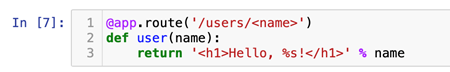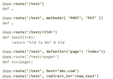- 다음은 라우트가 데코레이터를 이용하여 어떻게 선언되는지 보여준다.