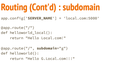 - 애플리케이션 인스턴스는 각 URL request 실행을 위해 어떤 코드가 필요한지 알아야 하며, 따라서 URL을 파이썬 함수에 mapping하는 기능이 필요하다.