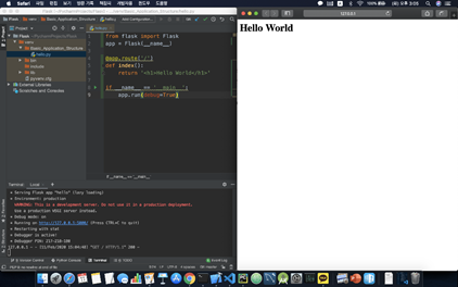 - 애플리케이션 인스턴스는 run 메소드를 갖고 있는데 이 메소드는 플라스크의 통합 개발 웹 서버를 실행한다.