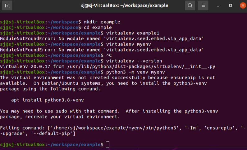 : 하지만 문제가 생겼다. https://stackoverflow.com/questions/63491221/modulenotfounderror-no-module-named-virtualenv-seed-embed-via-app-data-when-i 와 같은 에러가 떴다.. 답변에 있는 python3 -m venv 가상환경이름을 써도 다음과 같은 에러가 뜬다...