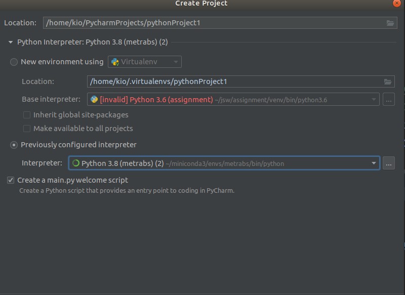 pycharm에서 new project를 열 때 interpreter를 anaconda 버전으로 바꾸기