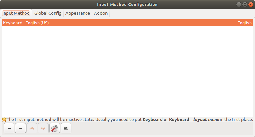 Input Method Configuration에서 하단 "+" 버튼을 클릭한다.
