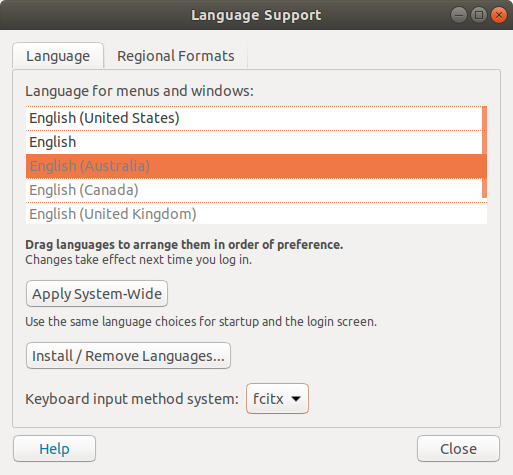설치가 완료되면 하단 keyboard input method system 항목을 fcitx로 변경한다.