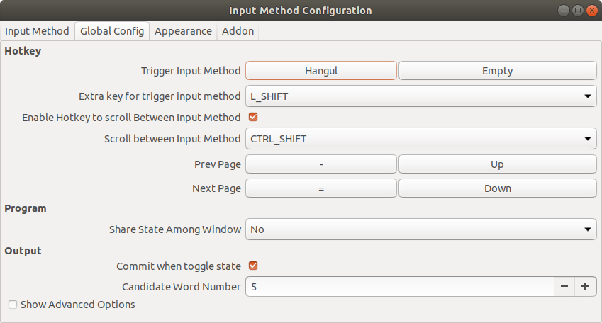 이제 Input Method Configuration의 Global Config 탭(tab)을 클릭한다.