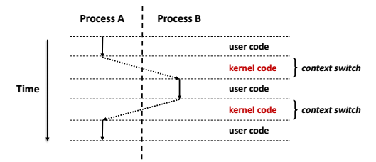 Context Switch를 통해, 한 process에서 다른 process로 control flow가 변화한다 2) Private address space