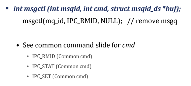 - IPC_RMID : 메시지 큐 제거