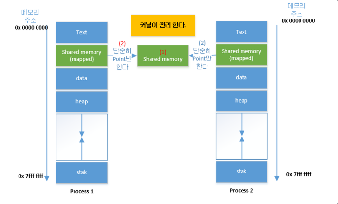 - 공유 메모리는 커널에서 관리 된다
